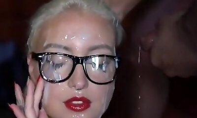 Beautiful BBW in glasses luvs jizz over her nice big tits