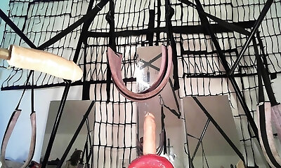 Fucking machine with fat cock attachment makes me unload uncontrollably