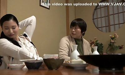 Mature Japanese housewife with ample nipples cuckolds her husband
