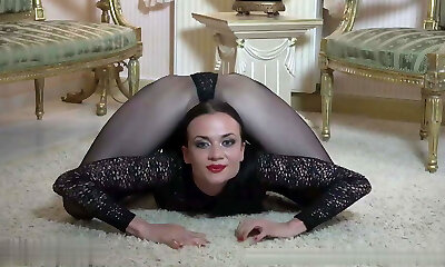 Flexible brunette ballerina jerks her pussy in weird positions