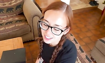 Teenage with glasses wants a powerful man to fuck her good