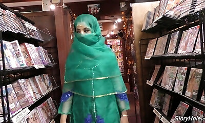 Hot Pakistani chick Nadia Ali deepthroats big hard-on in the glory hole room