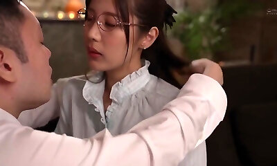 Japanese Milf plumbs the chief while her husband sits at the table!